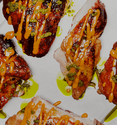 Nuestro pollo no viene con picante, lo puedes pedir por aparte.